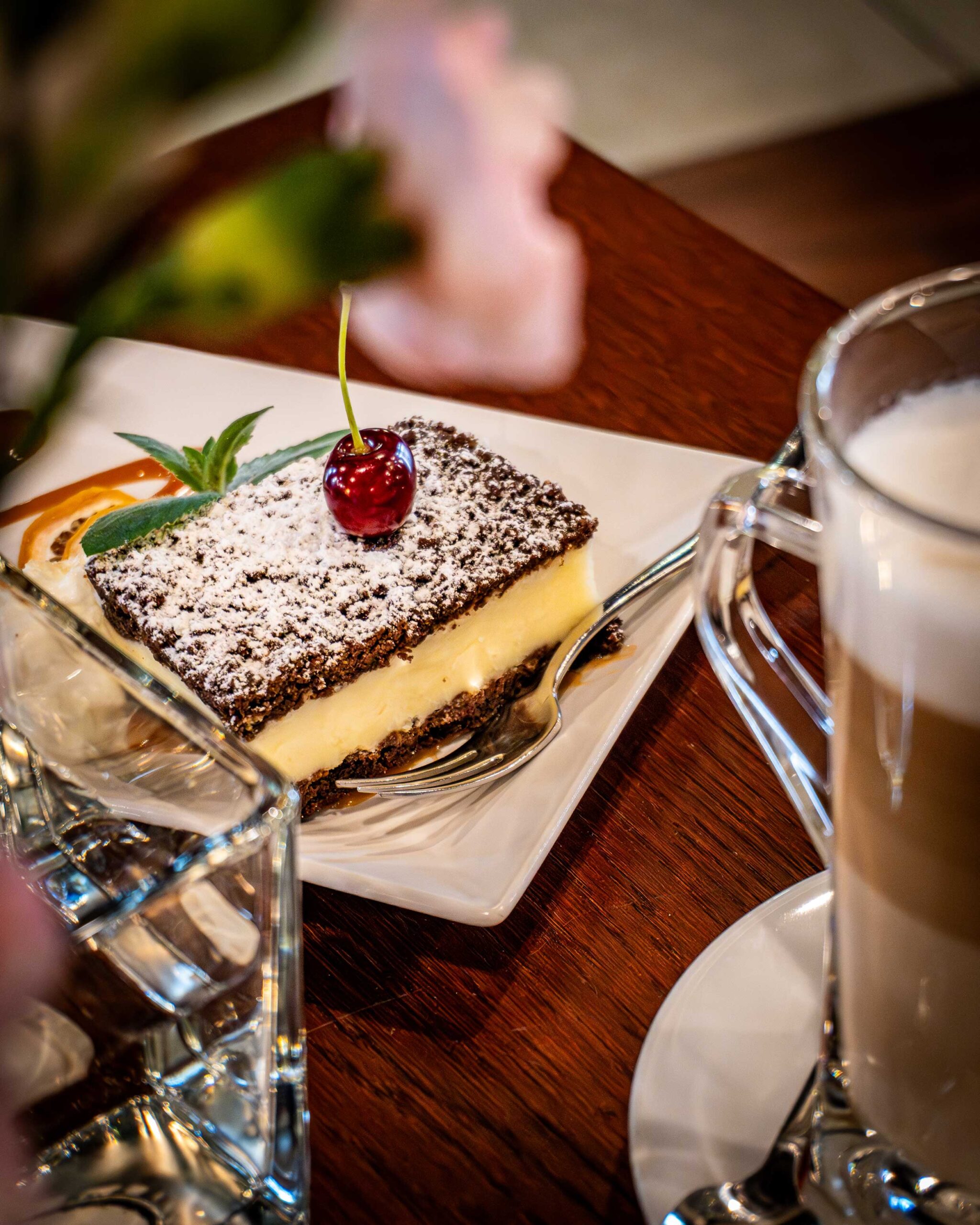Czekoladowy sernik z bitą śmietaną i maliną
